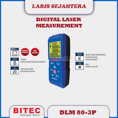 Jual Alat Laser Meteran Digital Bitec DLM 80-3 P Berkualitas. Jika Anda Berminat Silakan Hubungi Laris Sejahtera Tel. 021-2268-3317 – Hp. 0819-3236-9677. Harga Murah!