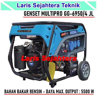 Jual Genset Bensin MultiPro GG-6950-4 JL Bergaransi Resmi. Jika Anda Berminat Silakan Hubungi Laris Sejahtera Tel. 021-2268-3317 – Hp. 0819-3236-9677. Harga Murah!
