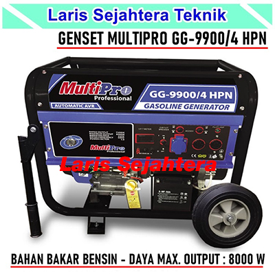 Jual Genset Bensin MultiPro GG-9900-4 HPN Bergaransi Resmi. Jika Anda Berminat Silakan Hubungi Laris Sejahtera Tel. 021-2268-3317 – Hp. 0819-3236-9677. Harga Murah!