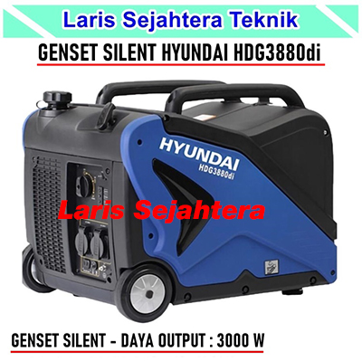 Hyundai HDG 3880di adalah genset tipe Inverter 4 Tac berbahan bakar bensin. Listrik yang dihasilkan lebih stabil, halus, dan suara yang dihasilkan lebih sunyi. Untuk pengoperasian genset ini menggunakan manual recoil starter. Dengan daya output sekitar 2800 W dan daya maksimum di 3100 W.