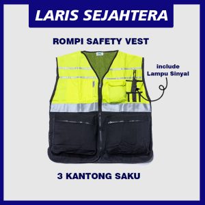 Jual Rompi Safety Vest Proyek Kuning Hitam Berkualitas. Jika Anda Berminat Silakan Hubungi Laris Sejahtera Tel. 021-2268-3317 – Hp. 0819-3236-9677. Harga Murah!